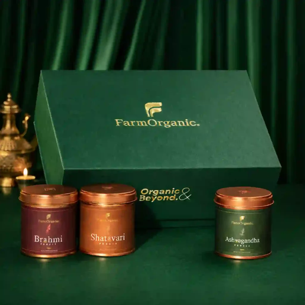 She Bloom Rituals Gift Box with Shatavari, Ashwagandha & Brahmi powders. 100% organic, crafted to support women’s health, stress relief & overall vitality—ideal for gifting.